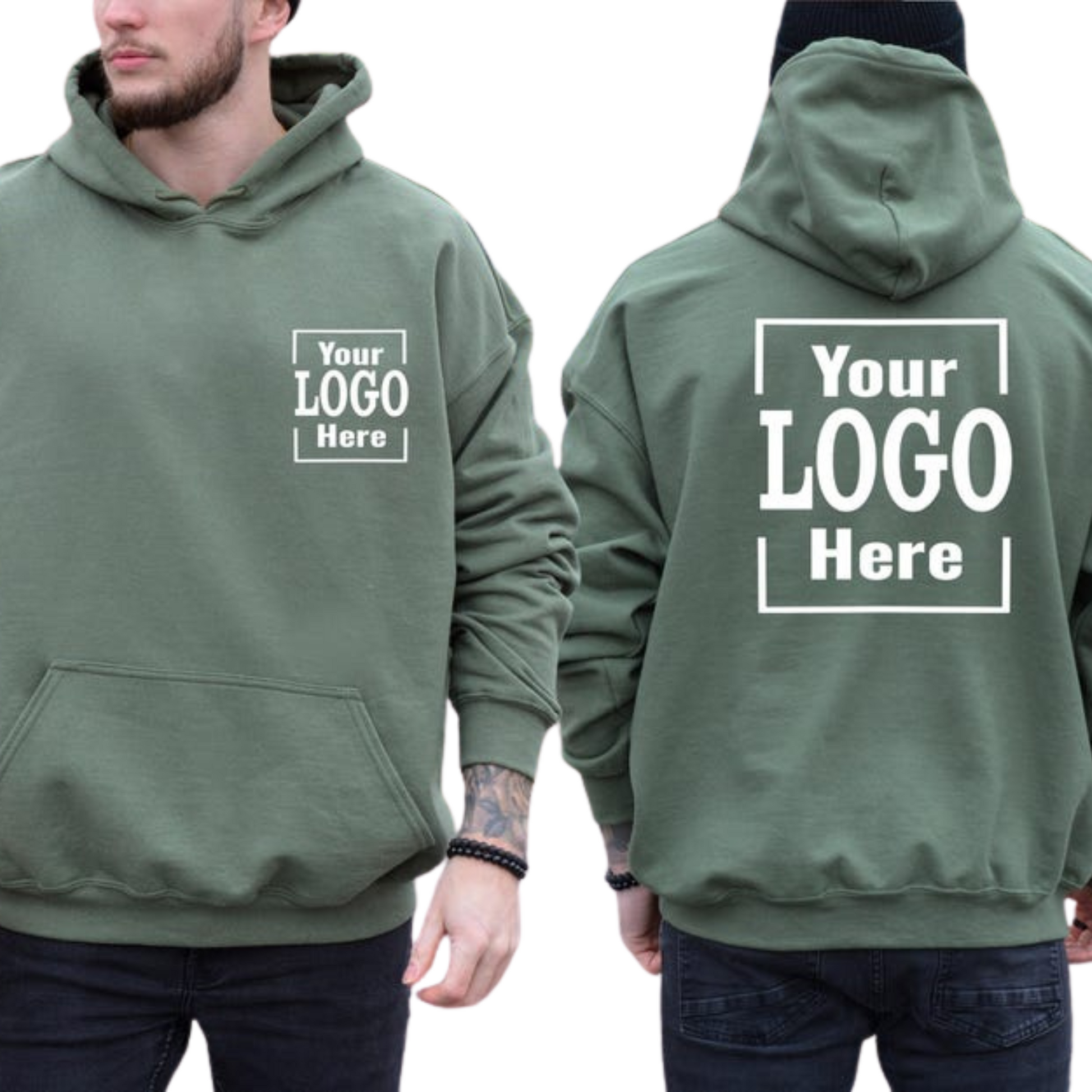 Printed Custom Logo Hoodie, Your Business Logo or Brand Logo, Front and Back Logo Hoodie