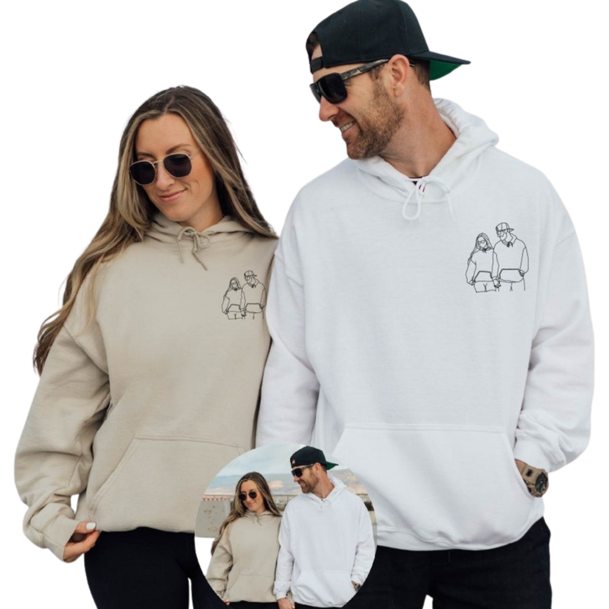 Embroidered Custom Portrait from Photo Hoodies,Custom Couple Portrait, Personalized Gifts