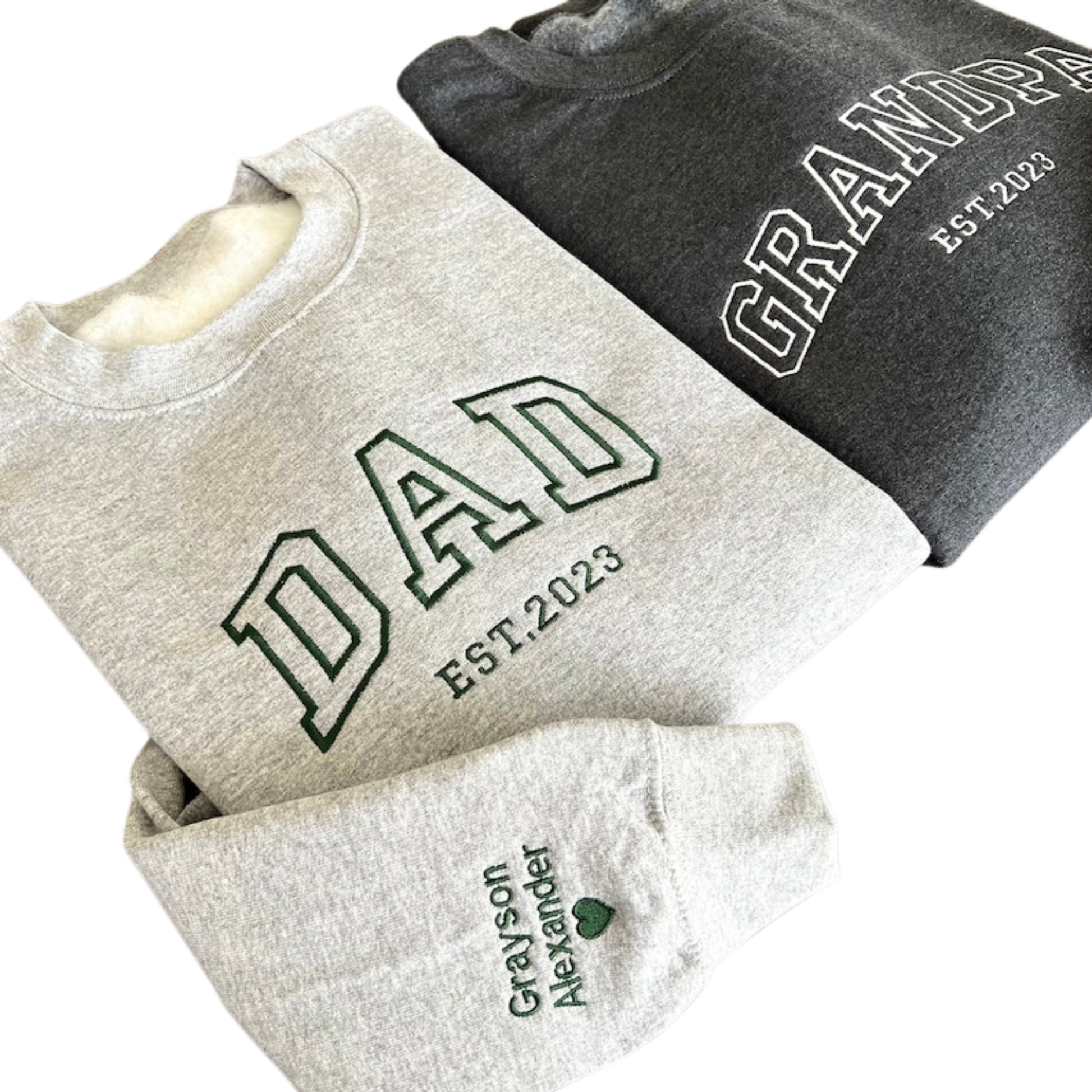 Custom Embroidered Sweatshirt, Name On Sleeve With Heart, Gift For New Dad, Father's Day Gift